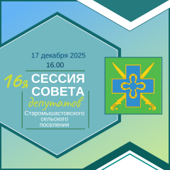 ![]() 10.12.2025 17 декабря 2025 года в 16.00 часов состоится 16-я сессия Совета Старомышастовского сельского поселения 5-го созыва по адресу: ст. Старомышастовская, ул. Красная,133, 2 этаж (актовый зал)Информируем о том, что 17 декабря 2025 года в 16.00 часов состоится 16-я сесси Совета Старомышастовского сельского поселения 5-го созыва по адресу: ст. Старомышастовская, ул. Красная,133, 2 этаж (актовый зал). Вопросы к рассмотрению: