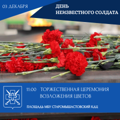 ![]() 03.12.2025 Празднование Дня Неизвестного СолдатаУважаемые жители Старомышастовского сельского поселения!