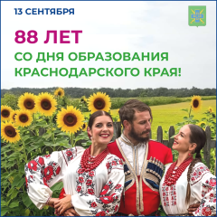 Примите самые сердечные поздравления с 88-й годовщиной со дня образования Краснодарского края!