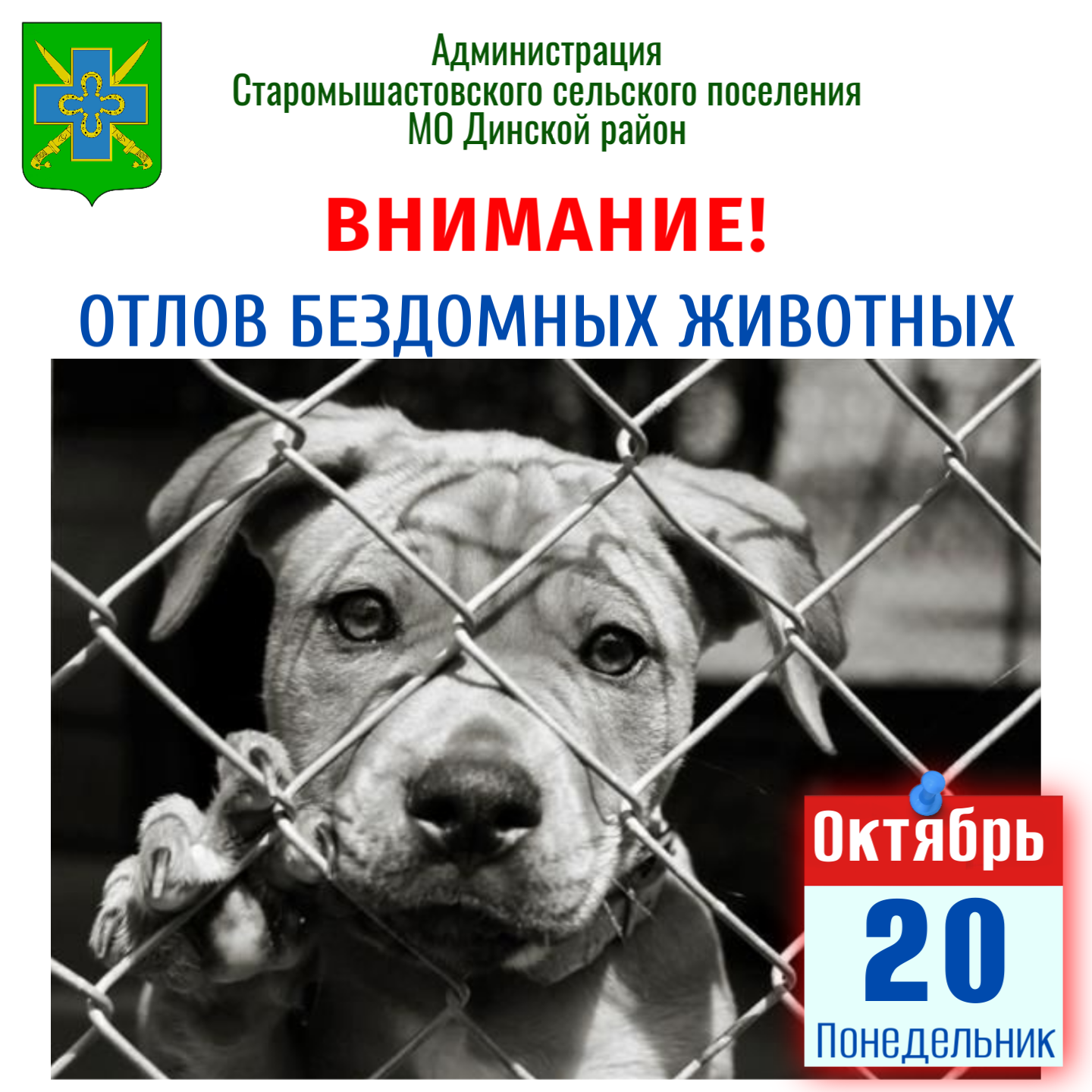 14.10.2025 Отлов бездомных животныхУважаемые жители Старомышастовского сельского поселения! В понедельник 20 октября 2025 года в нашем поселении будет организован отлов бездомных собак. После отлова животных доставят в приют для проведения вакцинации и стерилизации, затем их вернут в прежние места обитания. Просим жителей следить за своими питомцами и не оставлять их на улице без присмотра! Напоминаем, что во исполнение Закона № 2584 Краснодарского края от 27 сентября 2012 г., в администрации Старомышастовского сельского поселения МО Динской район работают телефоны «Горячей линии», предназначенные для сбора и регистрации заявок на отлов животных без владельцев: 8 (86162)7-52-52 и 8 (86162)7-53-23. Для подачи заявки на отлов бездомных животных в Старомышастовском сельском поселении вы можете обратиться по указанным телефонам «Горячей линии».