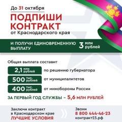 В Краснодарском крае действуют одни из самых выгодных условий для заключения контракта с Минобороны!