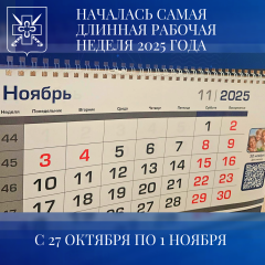 ![]() 27.10.2025 В России предстоит шестидневная рабочая неделя с 27 октября по 1 ноября Согласно производственному календарю на 2025 год, 1 ноября приходится на субботу. В соответствии с трудовым законодательством, если праздничный день совпадает с выходным, то выходной переносится на следующий рабочий день. В этом году перенос был осуществлен на понедельник, 3 ноября, что и привело к шестидневной рабочей неделе.