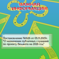 Постановление от 05.11.2025г. №626 О назначении публичных слушаний по проекту бюджета на 2026 год.doc [ скачать ]