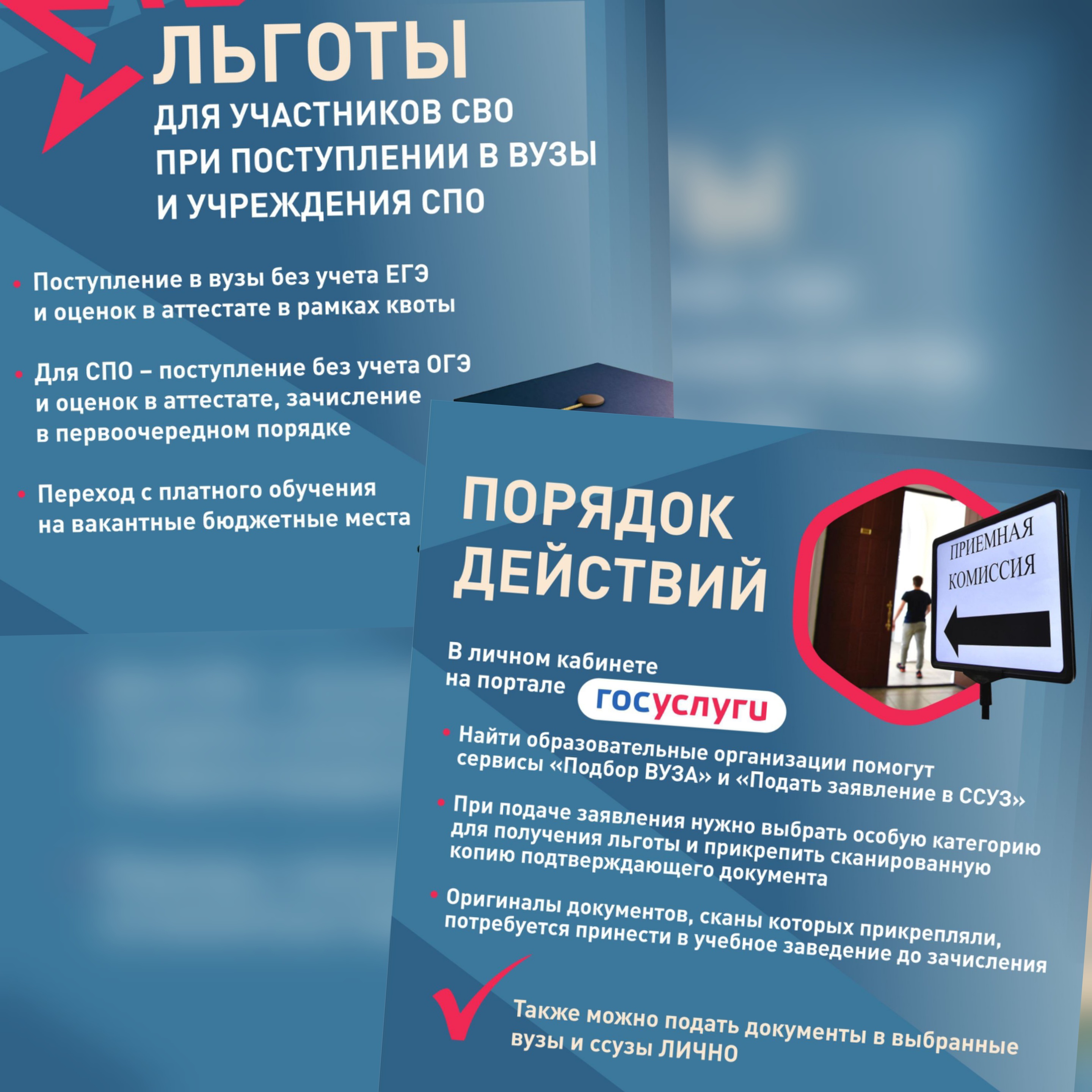 26.01.2026 На Кубани действуют льготы на образование для ветеранов СВОНа Кубани ветераны СВО могут поступить в учреждения высшего и среднего профобразования на бюджетные места Таких абитуриентов зачисляют по квоте независимо от оценок в аттестате и результатов ЕГЭ. Этой мерой поддержки в Краснодарском крае уже воспользовались более 330 участников специальной военной операции. Подробнее о мере поддержки в образовании на карточке