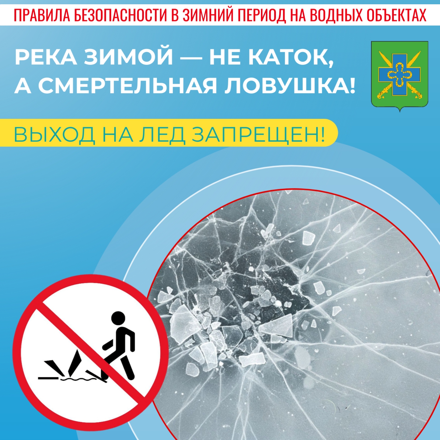 Безопасность вас и ваших детей — в ваших руках. Не рискуйте жизнью, не выходите на неокрепший и непроверенный лёд.