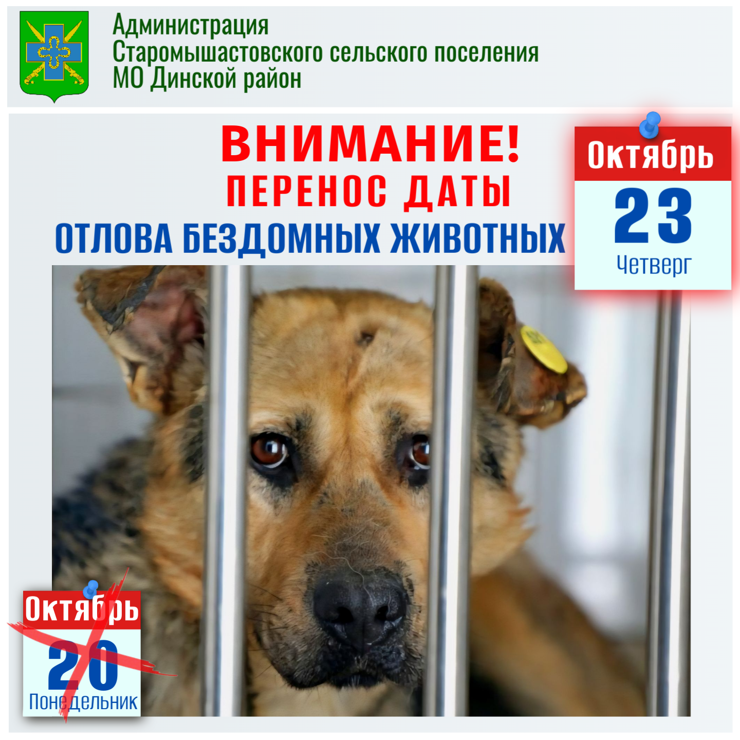 15.10.2025 О переносе даты отлова бездомных собакУважаемые жители Старомышастовского сельского поселения!