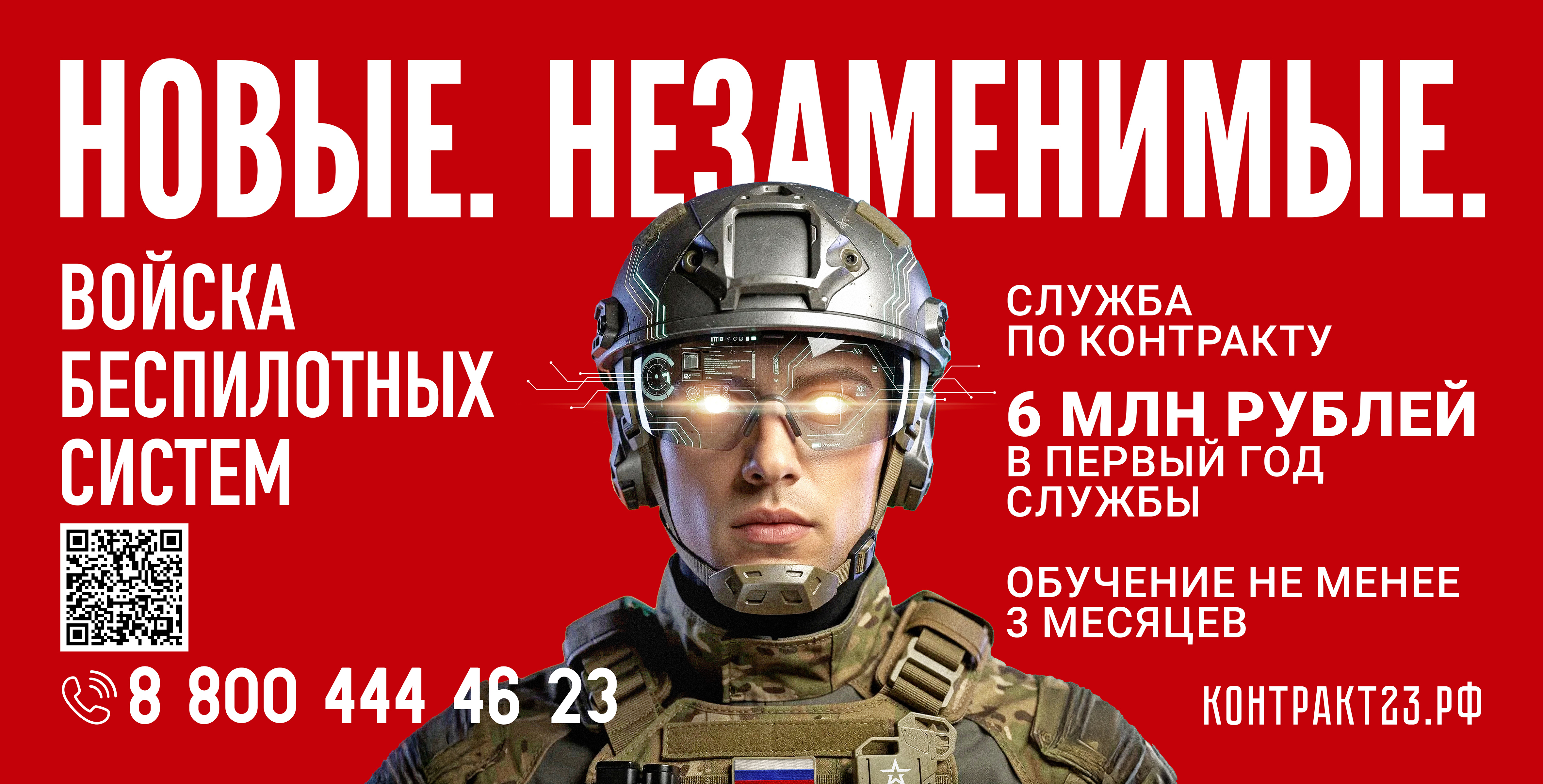 18.04.2026 СЛУЖБА ПО КОНТРАКТУ В НОВЫХ ВОЙСКАХ БЕСПИЛОТНЫХ СИСТЕМВ Краснодарском крае продолжается целевой набор в спецподразделения операторов БПЛА Требования: